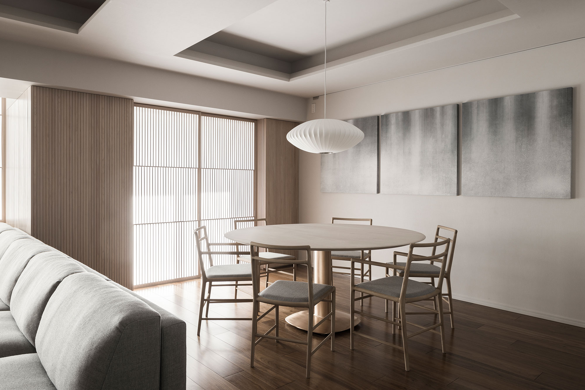現代的で都会的なデザイナーによるリノベーションの中に、どこか和の香りが漂うことで、温かみや落ち着きが生まれ、ゆたかな時間を演出します。